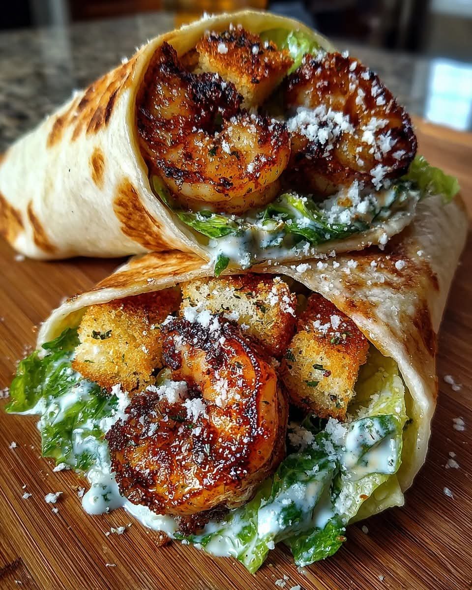 Zesty Grilled Shrimp Caesar Wraps are a fresh, protein-packed meal combining smoky grilled shrimp, crisp romaine lettuce, creamy Caesar dressing, shaved Parmesan, and warm tortillas. The shrimp is marinated with lemon, garlic, and spices for a bright, bold flavor that pairs perfectly with the classic Caesar elements. These wraps are quick, satisfying, and ideal for lunch, dinner, or meal prep.