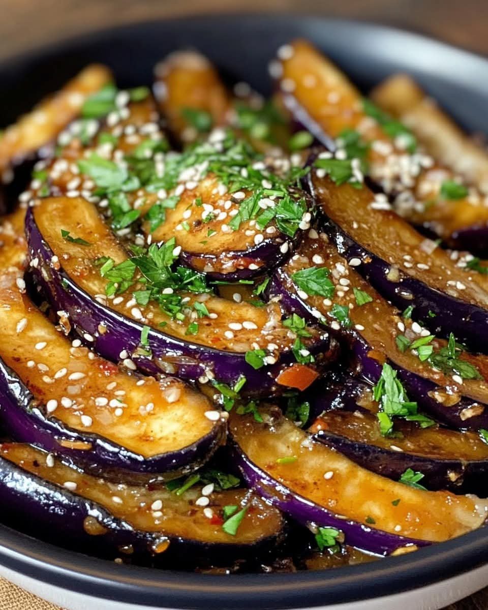 This dish features thin slices or strips of eggplant that are grilled or sauteed, then soaked in a vibrant marinade made with garlic, vinegar, herbs, and chili flakes. It’s a Mediterranean-style treat you can enjoy on bread, salads, grain bowls, or as part of an antipasto spread.