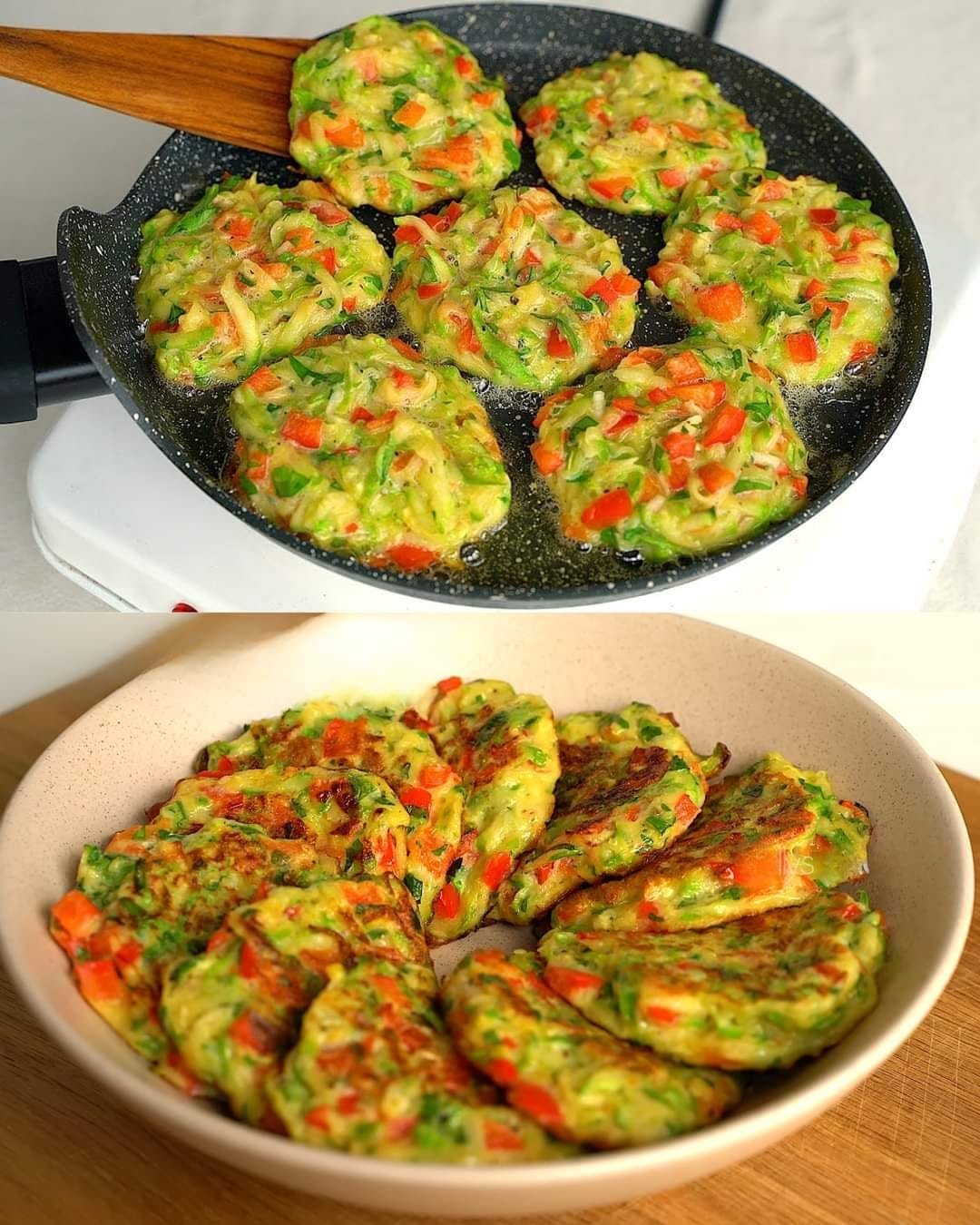 Zucchini and Pepper Vegetable Pancakes are a delicious, crispy, and savory way to enjoy fresh vegetables in a simple and satisfying dish. Made with shredded zucchini, bell peppers, and a light batter, these pancakes are pan-fried to golden perfection. They are perfect as a side dish, appetizer, or even a light meal, served with a dollop of sour cream, yogurt, or a zesty dipping sauce. Packed with nutrients and flavor, these veggie pancakes are a great way to sneak in more vegetables while enjoying a crunchy and flavorful bite!