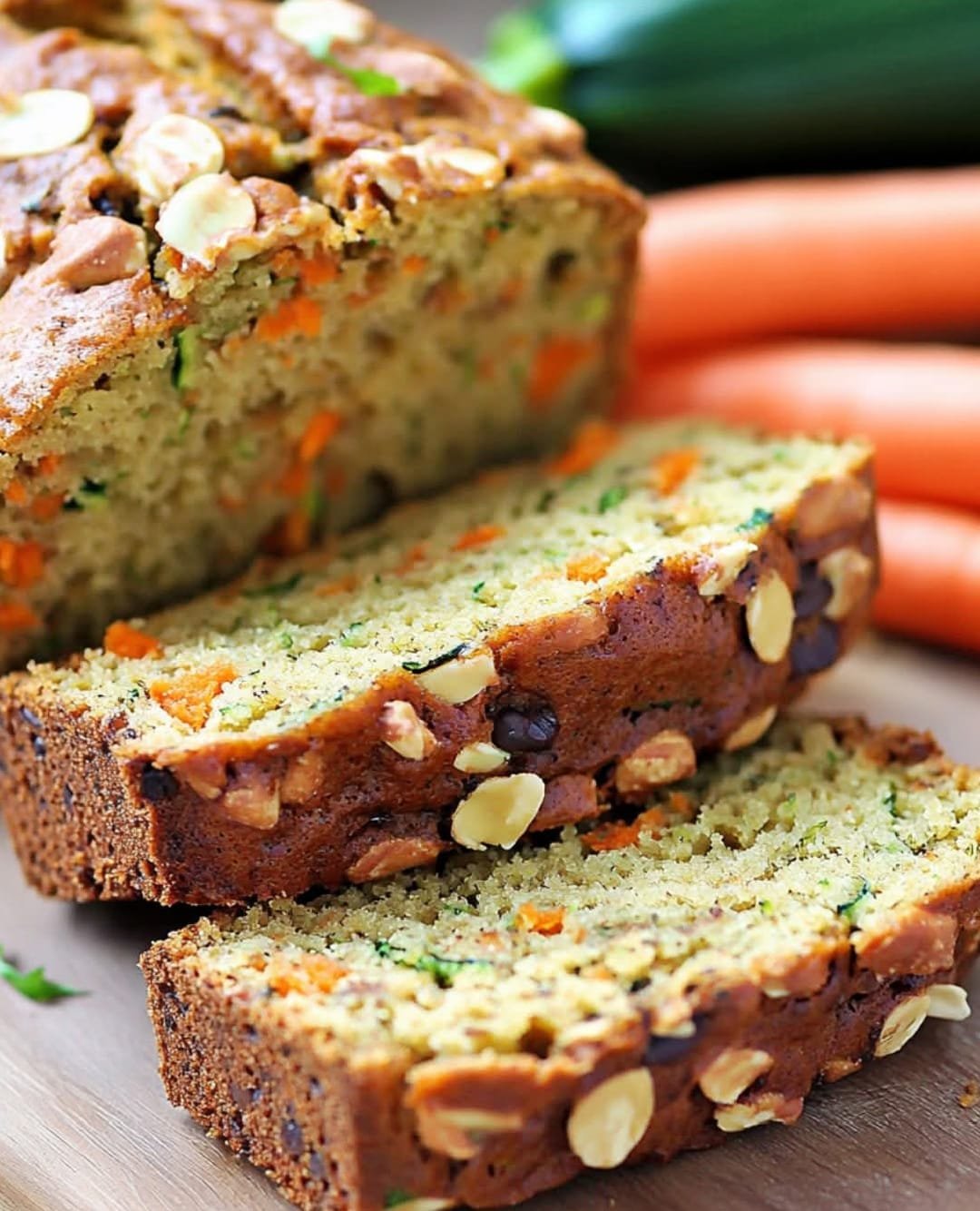 Zucchini Carrot Bread is a sweet or lightly spiced bread made with grated zucchini, carrots, and a blend of flour, sugar, and spices. It often includes nuts, raisins, or even chocolate chips for added texture and flavor. It’s a great way to use up summer zucchini or incorporate more vegetables into your diet.