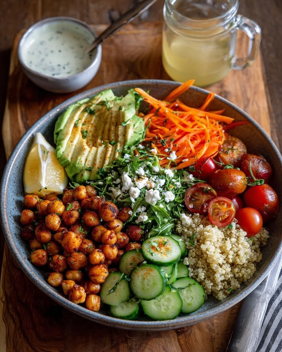 Top with warm roasted veggies and chickpeas.