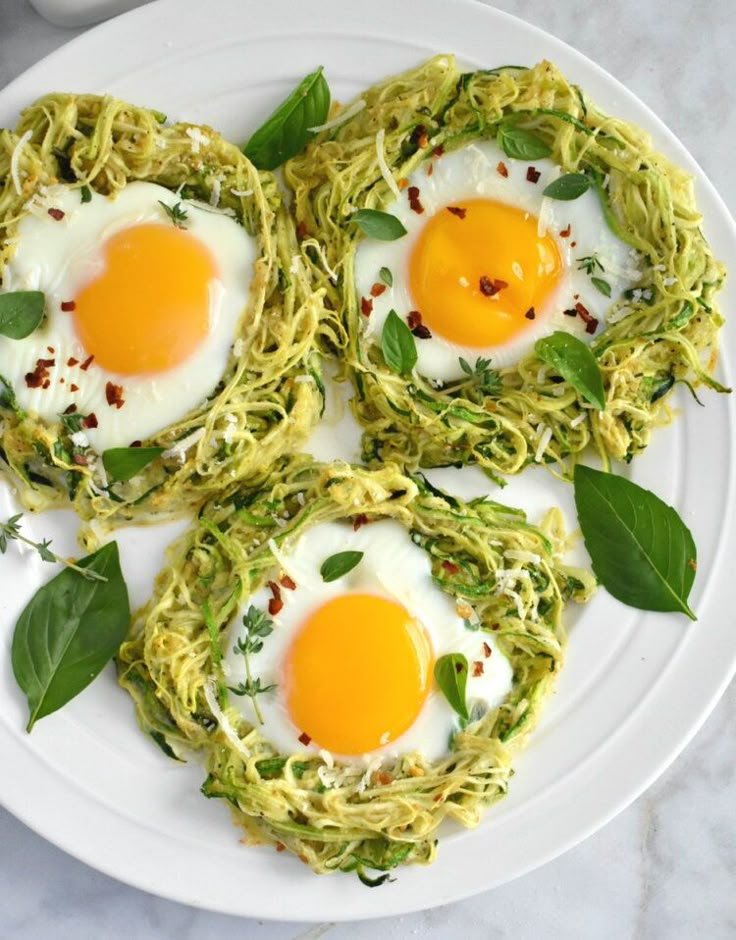 Bake zucchini nests for 10–12 minutes until slightly golden.