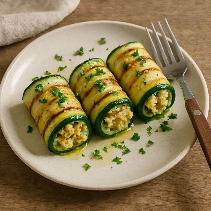 Tender grilled zucchini slices wrapped around a creamy, herbed filling made with ricotta, feta, and fresh herbs. These zucchini rolls are refreshing, low-carb, and packed with Mediterranean flavor.
